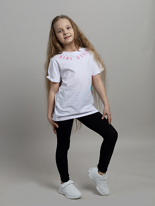 Лосины для девочки без боковых швов. Верхний срез обработан швом вподгибку, с предварительно притачанной резинкой.