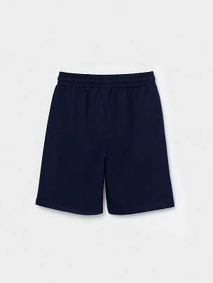 Шорты без карманов. Пояс притачной, со вставленной внутрь резинкой. В пояс вставлен шнур.