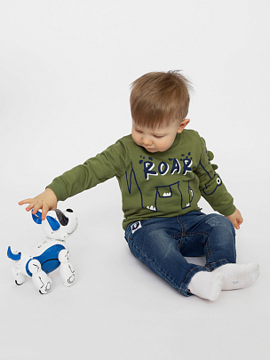 Шапка для мальчика из гладкоокрашенной рибаны с лайкрой. Боковые швы декорированы отделочной строчкой контрастного цвета. Спереди шапка декорирована принтом.