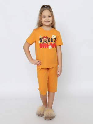 Пижама для девочки (футболка, брюки) коралловая