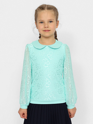 Лонгслив для девочки с длинными втачными рукавами. Перед джемпера декорирован принтом.
