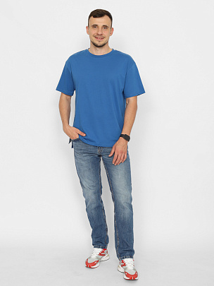 Футболка мужская оверсайз из кулирной глади. С рукавом до локтя. Воротник из эластичной рибаны. На полочке декоративный принт (ЗА ГРАНЬЮ БУДУЩЕГО). Удлиненная спинка, разрезы по бокам.