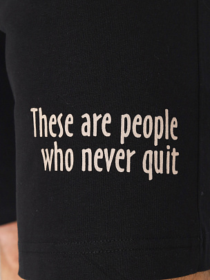 Гладкокрашенная пижама из футболки и шорт. Футболка свободного покроя с коротким рукавом. Горловина обработана притачной бейкой из рибаны с лайкрой. Перед оформлен небольшим принтом. Шорты свободного покроя длиной ниже колена выполнены из полотна дополнительного цвета. Цельнокроенный пояс обработан плоским швом вподгибку с одновременным прокладыванием резинки. На левой половинке внизу небольшой принт.