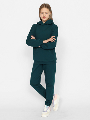 Брюки с притачным поясом и манжетами. В пояс вставлена резинка и функциональный шнур. Пояс и манжеты выполнены из полотна с эластаном. Брюки с отрезной боковой частью, верхняя вставка декорирована отделочными строчками, в подрезах расположен карман.
