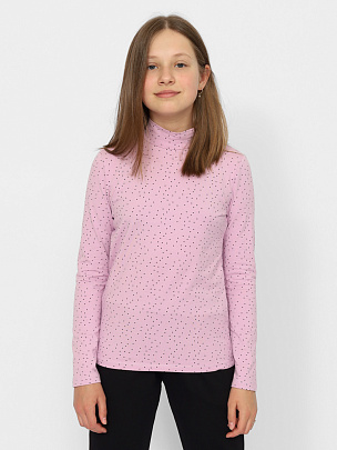 Водолазка с длинными рукавами. Воротник-стойка с отворотом. Перед декорирован принтом с использованием краски с блеском.