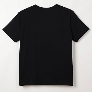 Футболка с коротким рукавом. Горловина обработана обтачкой из рибаны с эластаном. По ростку проложен долевик из экстрафорной ленты. С изнаночной стороны по ростку выполнена печать-размерник. На полочке выполнена небольшая шелкография мягкими красками. На полочке по низу с левой стороны нашивная вязаная декоративная этикетка.